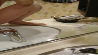 【素人SM】人妻が洗面台でおしっこ「ありえないし」と言いながらも楽しそうに丸見えの状態で…